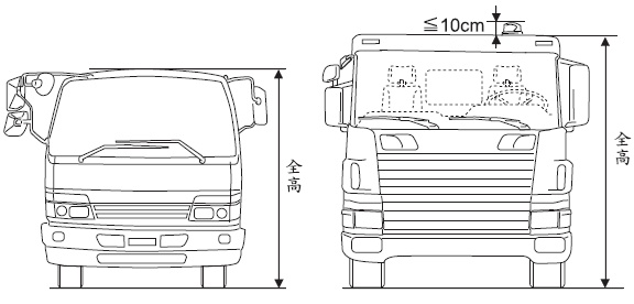 車輛之車頂裝置輪廓邊界標示燈、車頂燈,為車身之最高點、其燈具(含燈座)未超過10公分者,可不計入車高之量測範圍。