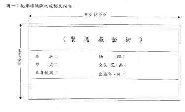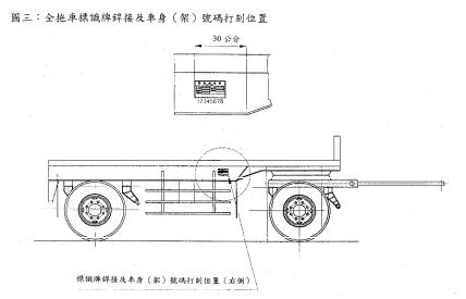 - 自中華民國88年9月1日起,國內產製者以出廠日為準,進口者以裝船日為準,拖車應依本規定打刻車身(架)號碼及銲接或鉚接標識牌。