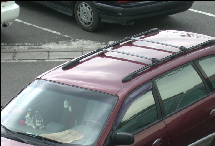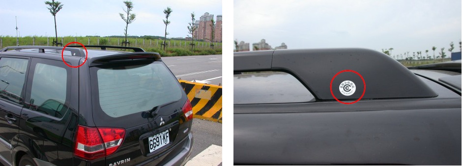 註:部分車型車頂上方僅裝設與車輛行駛方向平行之二支直桿(如下照片所示),如無橫桿者,非屬置放架,無需經安全審驗。