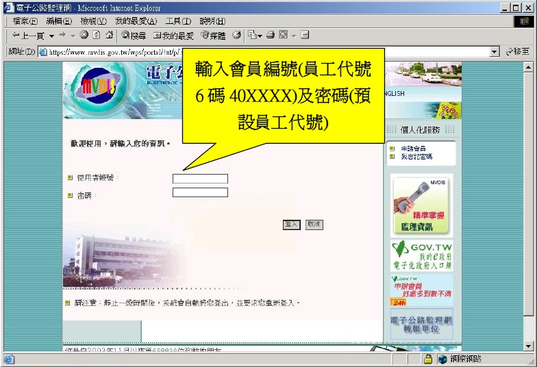 輸入使用者編號及密碼