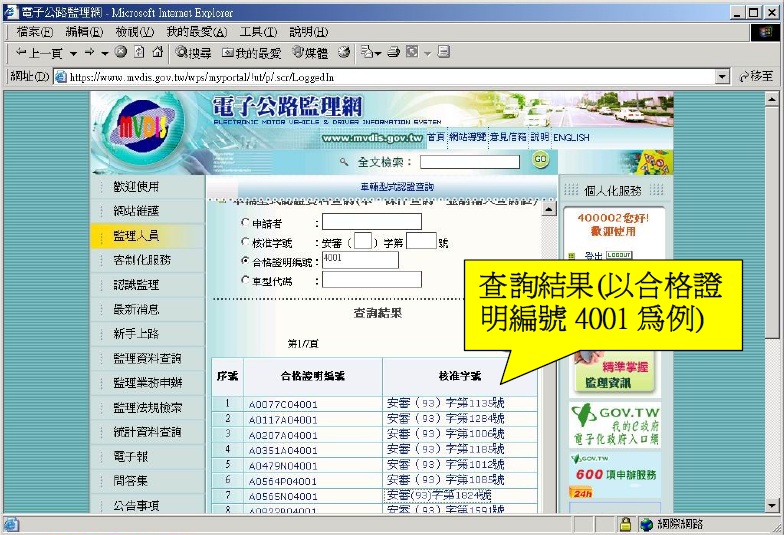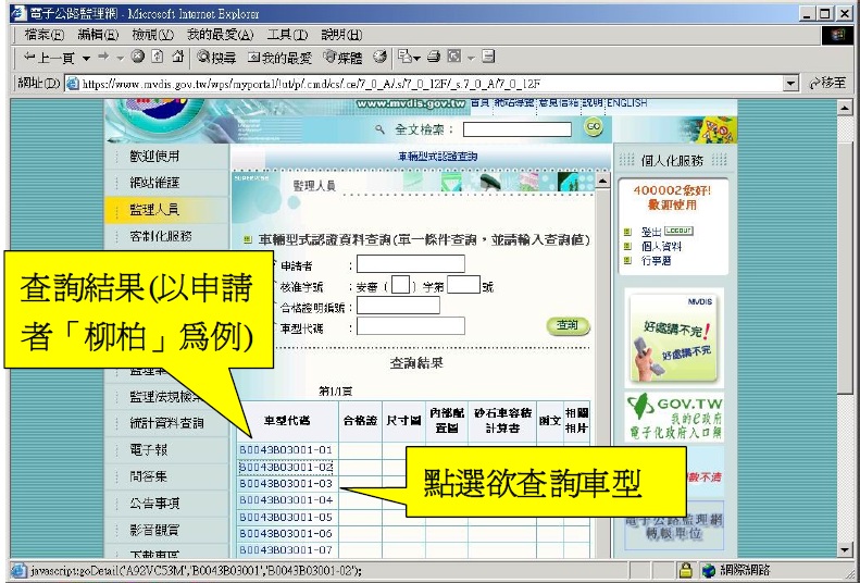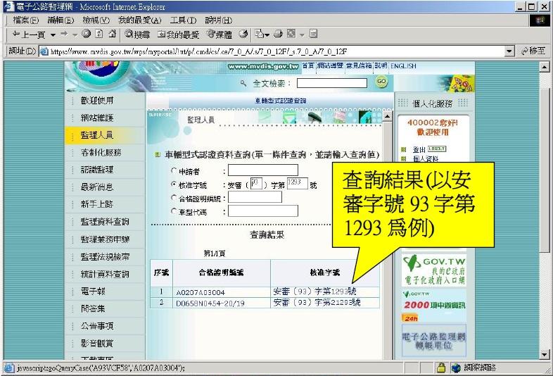 )車輛型式安全審驗資料查詢